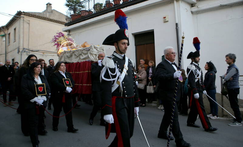 Seguirà alle 18:30 la suggestiva e solenne Processione dei Misteri, uno degli eventi più attesi, che attraverserà le vie della città. Ad accompagnare il sacro corteo dei Misteri sarà il Complesso Bandistico “Nicola Gorgoglione” della Città di Pietrapaola (CS), le cui note sottolineeranno il clima di raccoglimento.